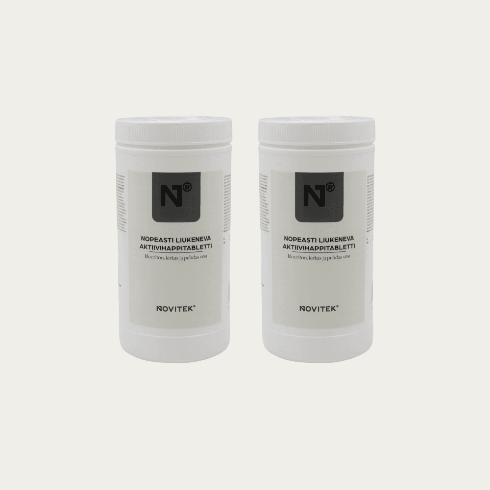 Novitek-aktiivihappitabletit tarjoavat kloorivapaan vaihtoehdon ulkoporealtaasi vedenhoitoon. Tabletit liukenevat helposti ja muodostavat vedessä aktiivihappea, joka hapettaa pois epäpuhtaudet, pitäen veden kirkkaana, raikkaana ja miellyttävänä käyttää. Tämä tekee aktiivihaposta hyvän valinnan niille, jotka haluavat välttää kloorin hajun tai ihoärsytyksen.